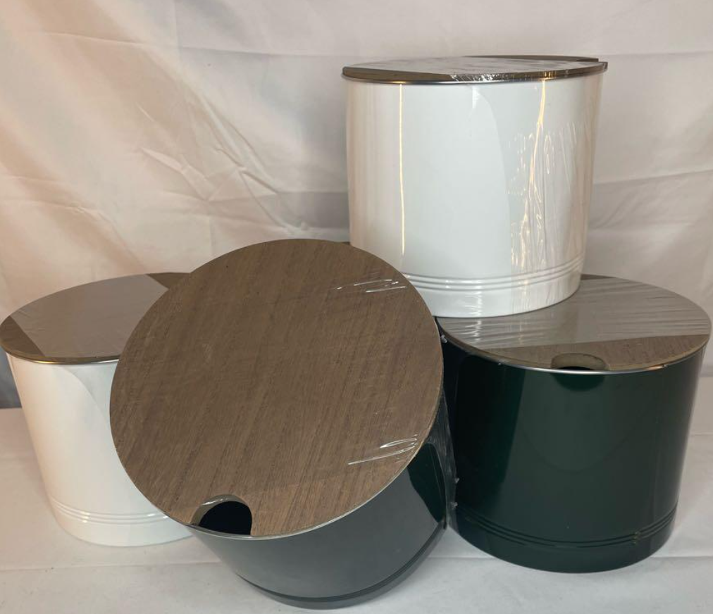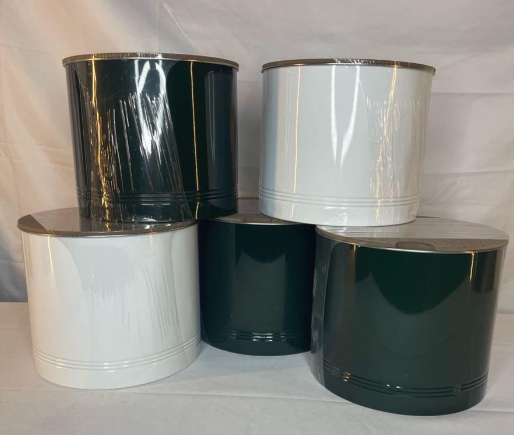 Altura 6 pulgadas; Diámetro 7,5 pulgadas. Para estrenar. Blanco. Ideal para manualidades y almacenamiento.