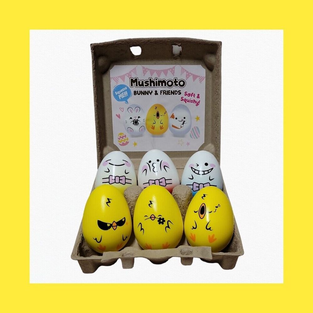 Mushimoto Bunny & Friends Soft & Squishy 6 huevos variados Alivio del estrés y los sentidos