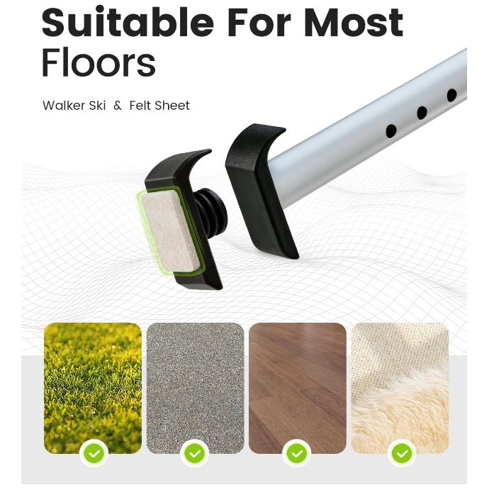?BONUS?Our adult walker comes with 2 pcs skis, reducing the friction with ground, which allow you roll over the walker smoothly.